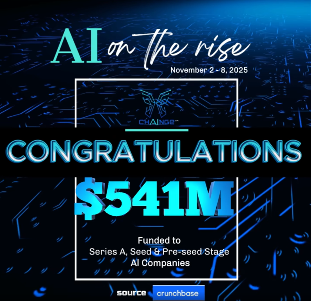 AI on the Rise set the tone for CHAINGE’s week, reporting $541 million in early-stage AI funding across robotics, reasoning engines, healthcare automation, and synthetic data platforms — a clear indication that investors are turning toward technologies built for long-term utility rather than hype. (Read AI on the Rise)